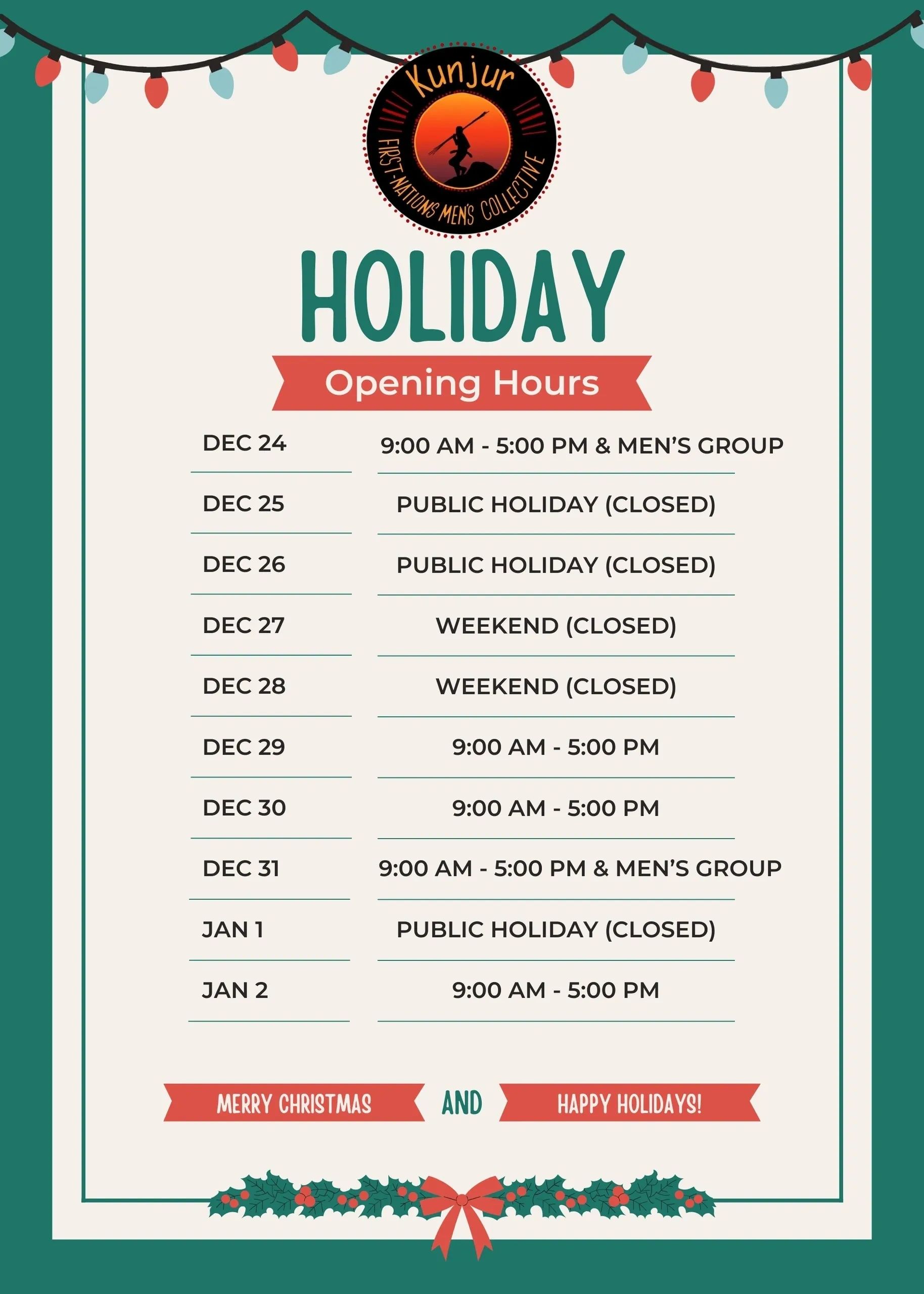 Click the button below to go to the Kunjur First Nations Men's Collective Facebook page for up-to-date information.